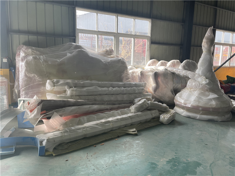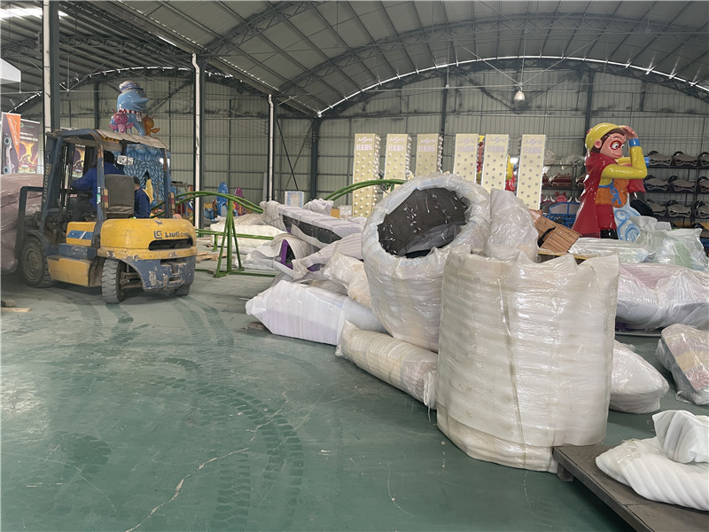 2022年3月8號,天氣晴朗,未來可期。一大早來到公司就看見門口停了四五輛大貨車,原來巨龍游樂今天要往平頂山郟縣發(fā)貨了,今天發(fā)的設(shè)備比較多,整整有五套呢,怪不得停了那么多輛車,其中包括豪華轉(zhuǎn)馬,逍遙水母,青蟲滑車,花果山漂流以及自控飛機,全部都是經(jīng)典項目。下面我們就來看看我們的裝車現(xiàn)場吧: