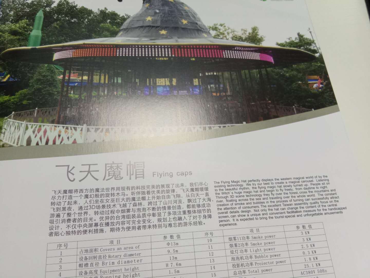 如下圖飛天魔帽也是我們龍之盈游樂設備有限公司生產(chǎn)出來的兒童游樂設備,聽伴隨著優(yōu)美的旋律,飛天魔帽緩緩的轉(zhuǎn)動了起來,人們坐在女巫巨大的魔法帽上開始自有的飛翔,從白天一直飛到黑夜,通過3D場景技術飛越過了森林,跨過了山川河流,飄過了大海游遍了整個世界,轉(zhuǎn)動過程中煙霧與泡泡不斷的情景創(chuàng)造,都能夠成功吸引消費者的目光。