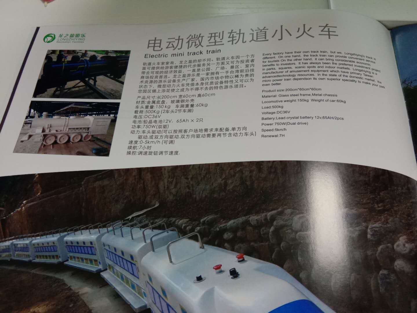下圖是我們龍之盈游樂公司生產(chǎn)的電動微型軌道小火車的圖冊介紹,我拍的不是很清晰,在給你們詳細的介紹一下吧,軌道火車很多游樂場里面都有,但是龍之盈的卻不同。軌道小火車因一個方面可提供給游客便捷的代步服務,另一方面又可為投資者帶去可觀的經(jīng)濟效益,一直是公園、廣場、景區(qū)、室外商場投資的*選。