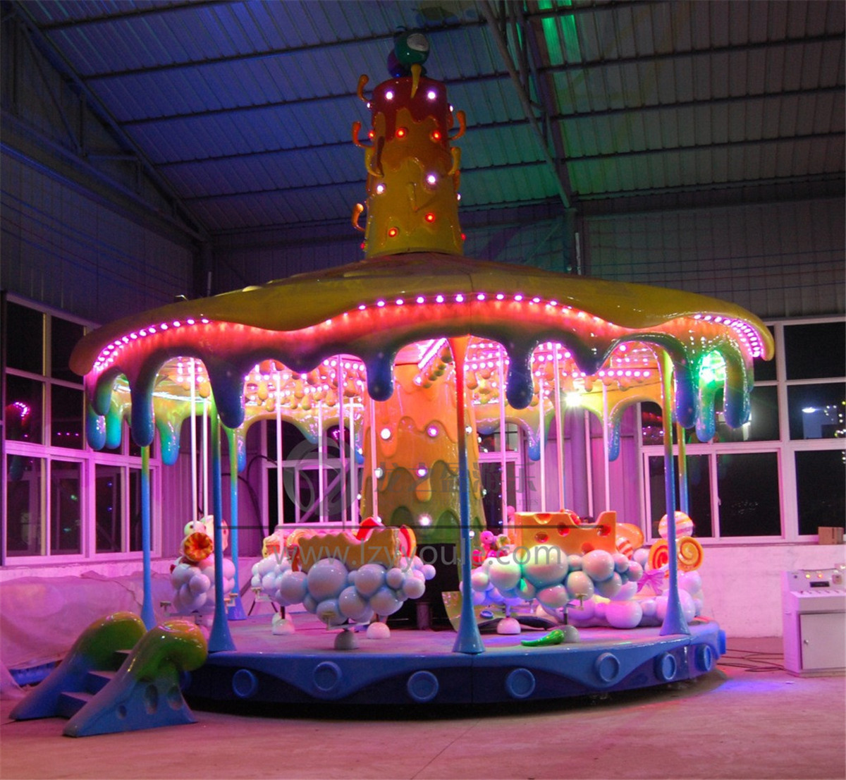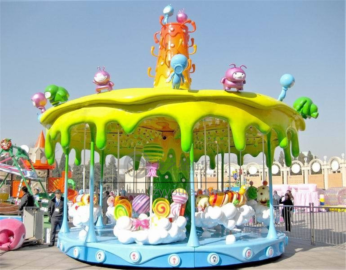 1、蟲蟲卡通轉(zhuǎn)馬是由本廠獨(dú)立設(shè)計(jì)開發(fā)生產(chǎn)并擁有22項(xiàng)國家專利的一種非刺激性游樂設(shè)備,他擁有漂亮絢麗的外形和燈光,可供21個(gè)人同時(shí)乘坐。卡通世界一樣炫目的顏色特別是到了晚上,蟲蟲轉(zhuǎn)馬的燈光全部打開,就好像我閃閃發(fā)光的瑩火蟲一樣,夢(mèng)幻而美好!特別吸引人們的目光!