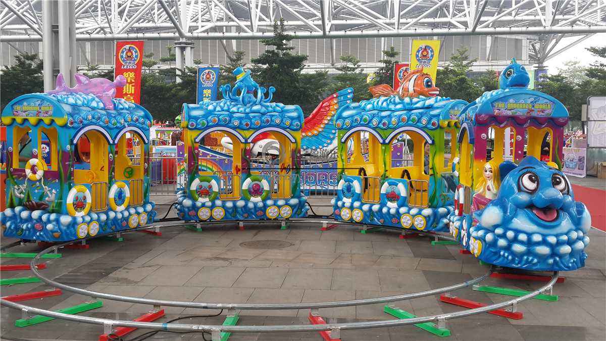 2、小火車是備受2-5歲小朋友喜愛的一款兒童游樂設(shè)施,海洋小火車擁有藍(lán)白相間的主色,就像藍(lán)天白云給人軟綿綿的感覺。滑行過程中車輪與軌道的摩擦,會(huì)使坐在車廂里的小朋友上下顛簸,更像是在大海中翻滾前行。車廂數(shù)量一般為4節(jié),可供14人乘坐,車體采用優(yōu)質(zhì)玻璃鋼,耐磨韌性好,龍之盈游樂始終不忘初心,用質(zhì)量說話,用產(chǎn)品樹立品牌。